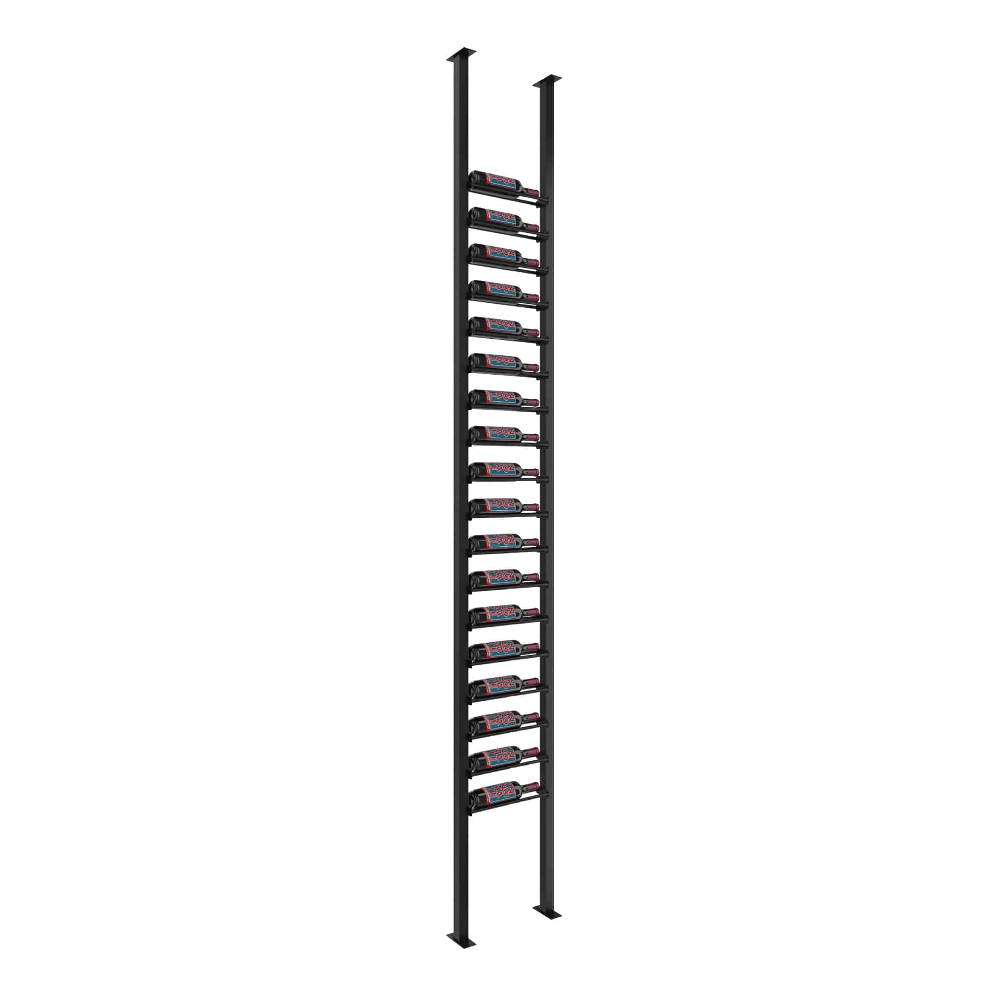 Evolution Low Profile Post 1C 10' Wine Rack Kit distills VintageView’s slimmest engineering into a single-column display that projects just 3 in (8 cm) from the wall. Tension-mounted between floor and ceiling, it creates the illusion of a floating, label-forward ribbon of bottles—perfect for glass partitions, tile feature walls, or room-dividing installations. Depending on depth, the kit cradles 18, 36, or 54 bottles (750 ml or 1.5 L) while preserving floor space and delivering gallery-worthy presentation.
